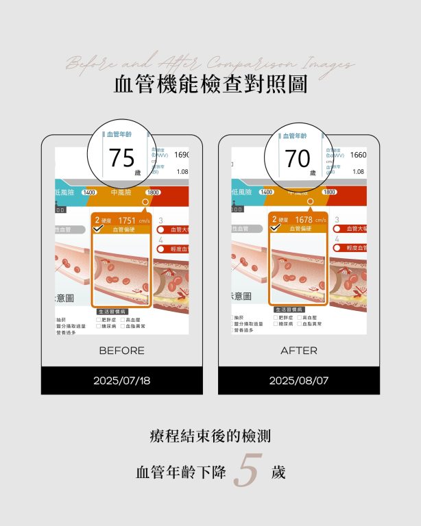 除了身體的主觀感受,我們也透過 血管檢測 進行數據對比。