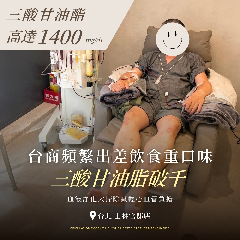 林先生是一位50多歲的台商,由於長期在兩岸奔波工作,在對岸期間經常外食,且飲食偏重口味,導致他的三酸甘油脂長期偏高。多次健康檢查結果顯示,林先生體內的三酸甘油脂水準已經達到危險的程度。儘管他已經透過藥物協助控制,林先生的三酸甘油脂依然波動不穩定。經朋友介紹,他來到了正欣診所,希望尋求藥物之外的解決方案。正欣診所的醫療團隊在詳細評估林先生的狀況後,為他設計了一套針對性的血液淨化療程。希望通過一次性的大掃除,徹底清除他體內的三酸甘油脂。除了血液淨化,診所還為他制定了營養師指導的飲食計劃,以確保三酸甘油脂的水準能夠得到更穩定的控制。
