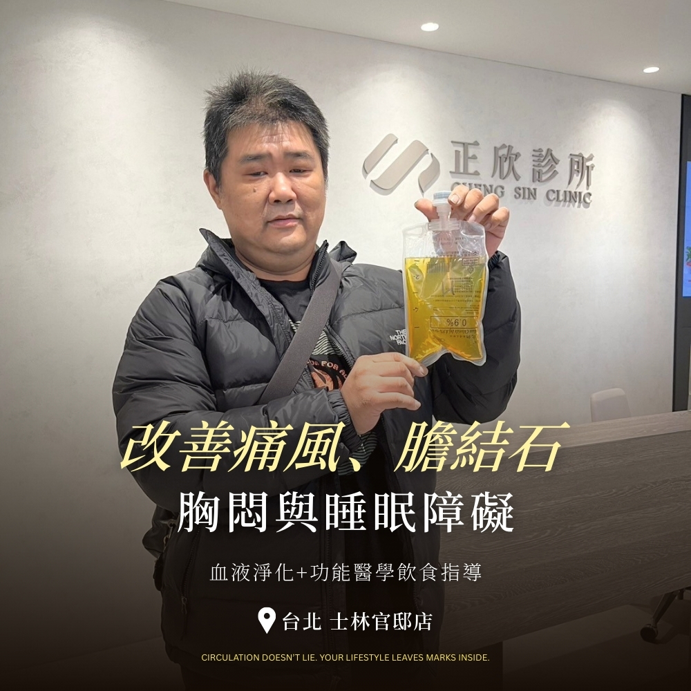 李先生,44歲,長期受抽菸和不良飲食習慣的影響,體重逐年上升,四年前因呼吸不順接受心臟支架手術。然而,術後的他仍飽受喘息、疲勞等症狀所困擾,日常生活變得十分吃力,加上痛風及膽結石的反覆發作,睡眠質量也大打折扣,甚至需要藥物輔助入眠。意識到健康危機迫在眉睫,他決定來到正欣診所,尋求更專業且全面的心血管保養治療,重新找回健康與生活品質。