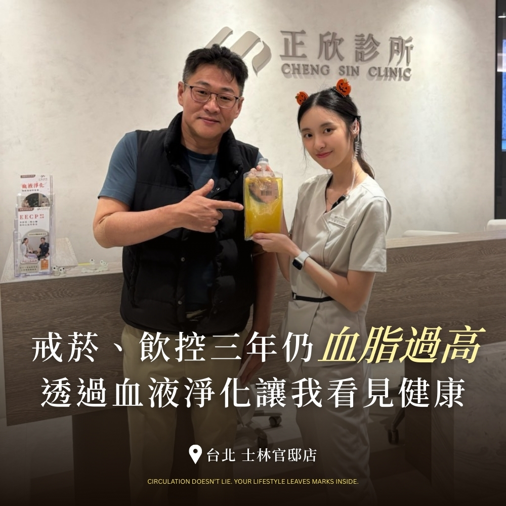 李先生,45歲,是一位製造業的高階主管,年輕時由於應酬繁多,工作環境充滿著沙塵及灰塵,且長期處於頻繁飲酒、抽菸與熬夜的狀態,逐漸累積了身體的壓力與代謝負擔,三年前,他為了追求更健康的生活方式,毅然決定戒酒並開始嚴格控制飲食,然而,由於工作忙碌,他始終無法投入足夠的時間與精力於運動上,即便生活習慣已經逐步改善,但每次的體檢報告上,膽固醇數值仍亮著紅字,這讓他不免感到無奈與挫敗,幸好太太在多媒體上接觸到各種健康知識,了解到相關的預防醫學概念後,來到正欣診所諮詢專業的意見。