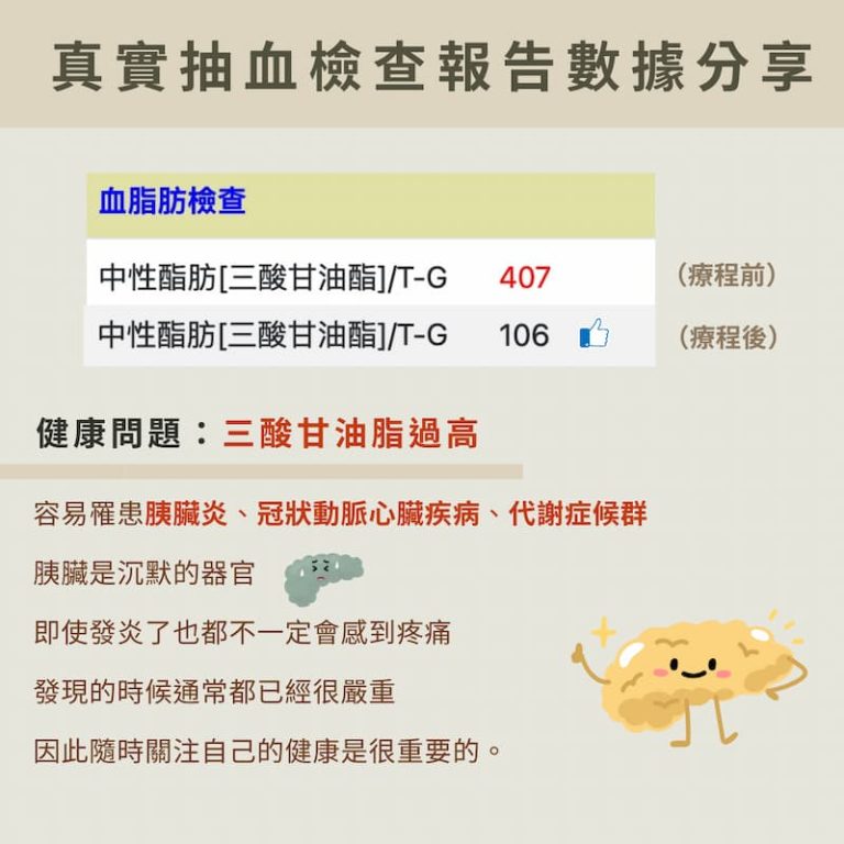 經過血液淨化療程後後李先生特別提到睡眠品質顯著改善,而在數據上,效果更是令人驚喜,三酸甘油脂從原先的407mg/dL驟降至106mg/dL,看到這份久違的「漂亮報告」時,李先生內心充滿喜悅,深感血液淨化不僅在數據上有明顯改善,更讓他在生活品質上有了實質的提升,這樣的成果讓他對未來的健康管理更具信心,李先生表示:「會將正欣的醫療專業分享給親朋好友,讓大家的健康也能一起進步!」