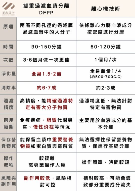 在比較雙重過濾血漿析離(DFPP)和離心機技術時,我們可以看出兩者各自的優勢,尤其是在處理不同健康需求時所展現的效果。DFPP技術,作為一種精密的血液淨化方法,具有多層次的優勢,特別適合於需要精準過濾特定有害物質的情況。相比之下,離心機技術則適合於一些基礎的血漿分離應用。